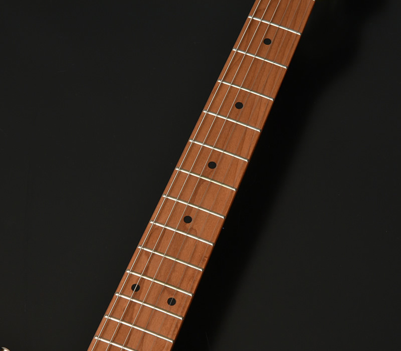 ローステッドメイプルとはメイプルを高温で加熱処理して材の中の水分や油分を揮発させることにより剛性を高めた材。ネックに使用されるとその効果は安定性だけでなくサウンドにも及び、豊かな生鳴りと経年変化したビンテージのようなこなれたトーンを生み出します。