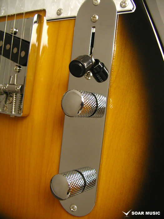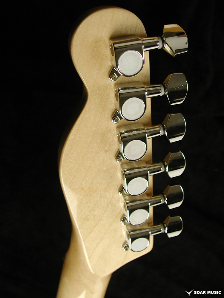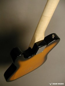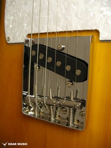 テレキャスターの特徴でもあるリアピック部分まで幅広く延長されたブリッジプレートは独特のサウンドにも大きな影響を与えています。