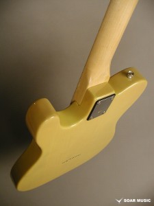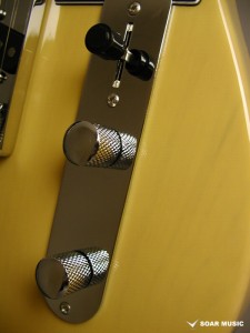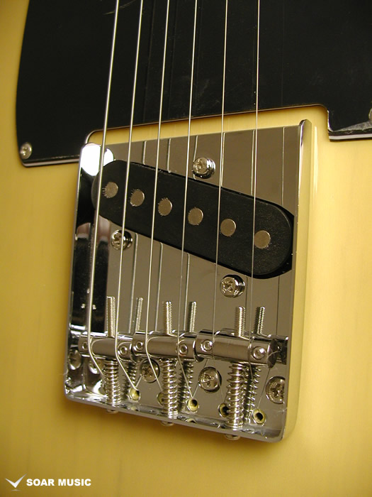 テレキャスターの特徴でもあるリアピック部分まで幅広く延長されたブリッジプレートは独特のサウンドにも大きな影響を与えています。