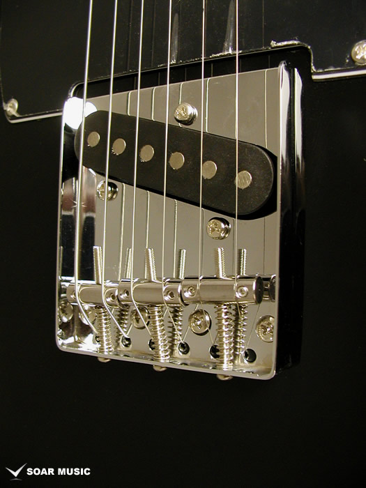 テレキャスターの特徴でもあるリアピック部分まで幅広く延長されたブリッジプレートは独特のサウンドにも大きな影響を与えています。