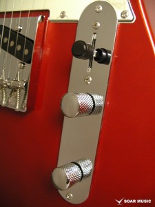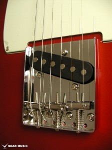 テレキャスターの特徴でもあるリアピック部分まで幅広く延長されたブリッジプレートは独特のサウンドにも大きな影響を与えています。