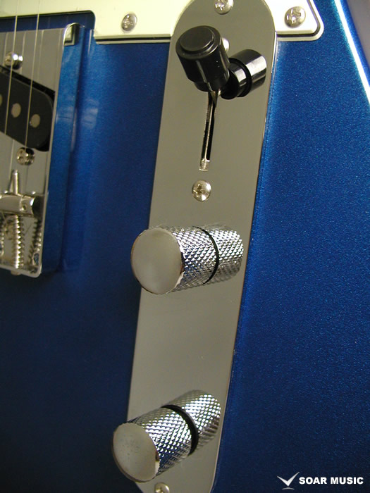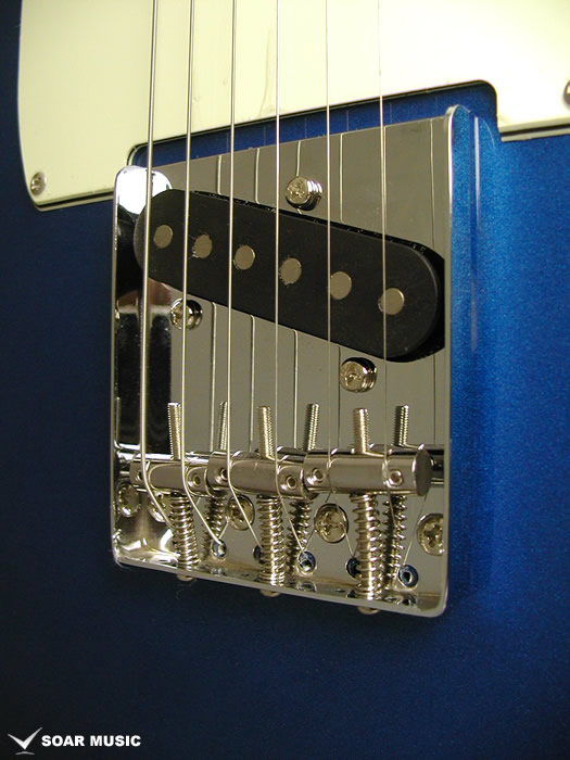 テレキャスターの特徴でもあるリアピック部分まで幅広く延長されたブリッジプレートは独特のサウンドにも大きな影響を与えています。