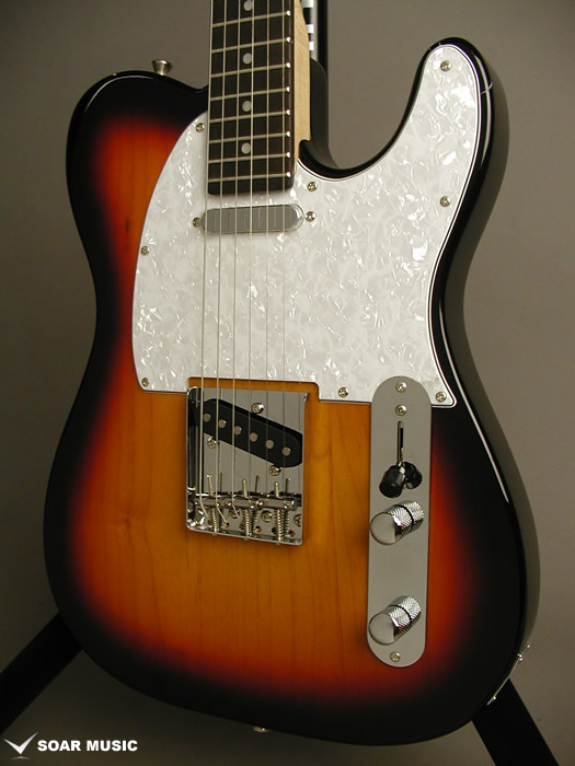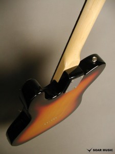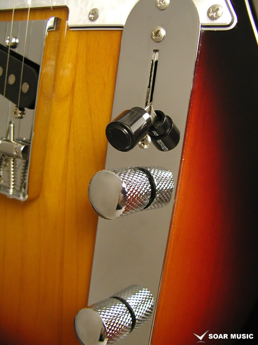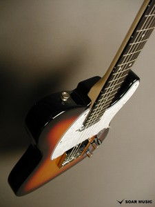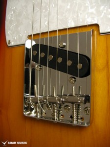 テレキャスターの特徴でもあるリアピック部分まで幅広く延長されたブリッジプレートは独特のサウンドにも大きな影響を与えています。