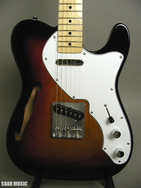 テレキャスターを基にホロウボディ加工を施したシンラインタイプ、BTH-380のレアモデルです!通常、3トーンサンバーストカラーのBTH-380は指板がローズ指板タイプのみなのですが、こちらはメイプル指板仕様の1本です。たまたま出来た規格外の1本ということで、再入荷はできません。