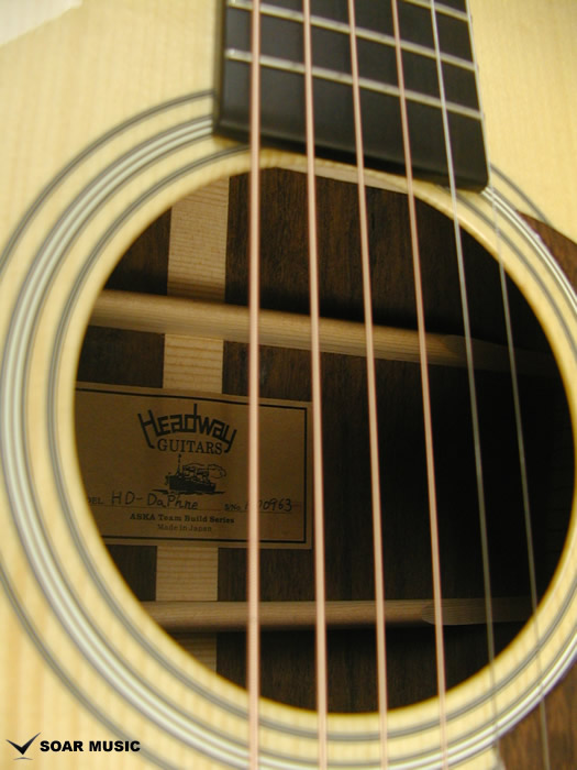 Headway のAska Team Build シリーズがお届けする意欲作。ボディトップにはAdirondack Spruce(アディロンダック・スプルーズ)、ボディサイド&バック、ピックガードに Laurel (月桂樹)材を使用し、3本限定で製作されたHD-Daphne(ダフネ)です。ボディトップには今や希少材で高級ギターなどに使用される上質なアディロンダック・スプルースを贅沢に使用。豊かな共振性を備えつつも安定した強度があり、低音〜高音域までレンジが広く、ダイナミクスに優れたクリアで深みのあるサウンドが特徴です。ボディサイド&バックには珍しい月桂樹材を組合わせています。