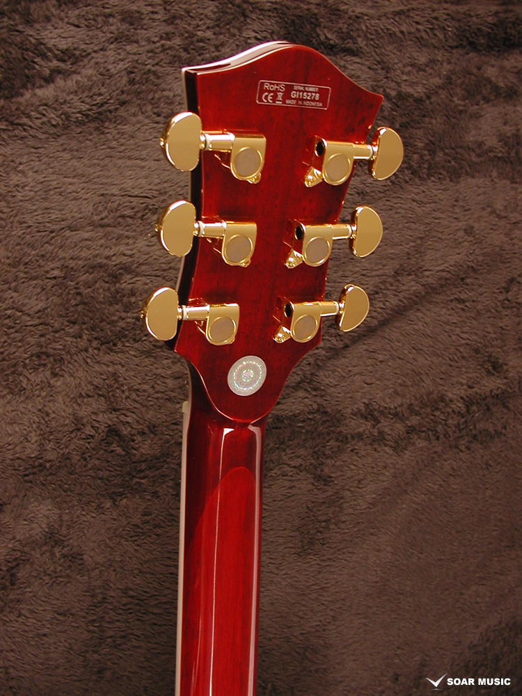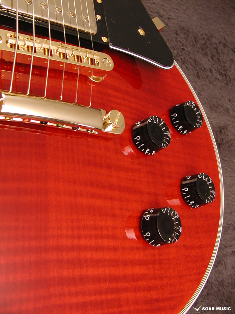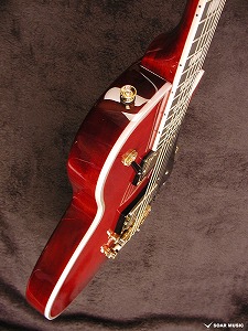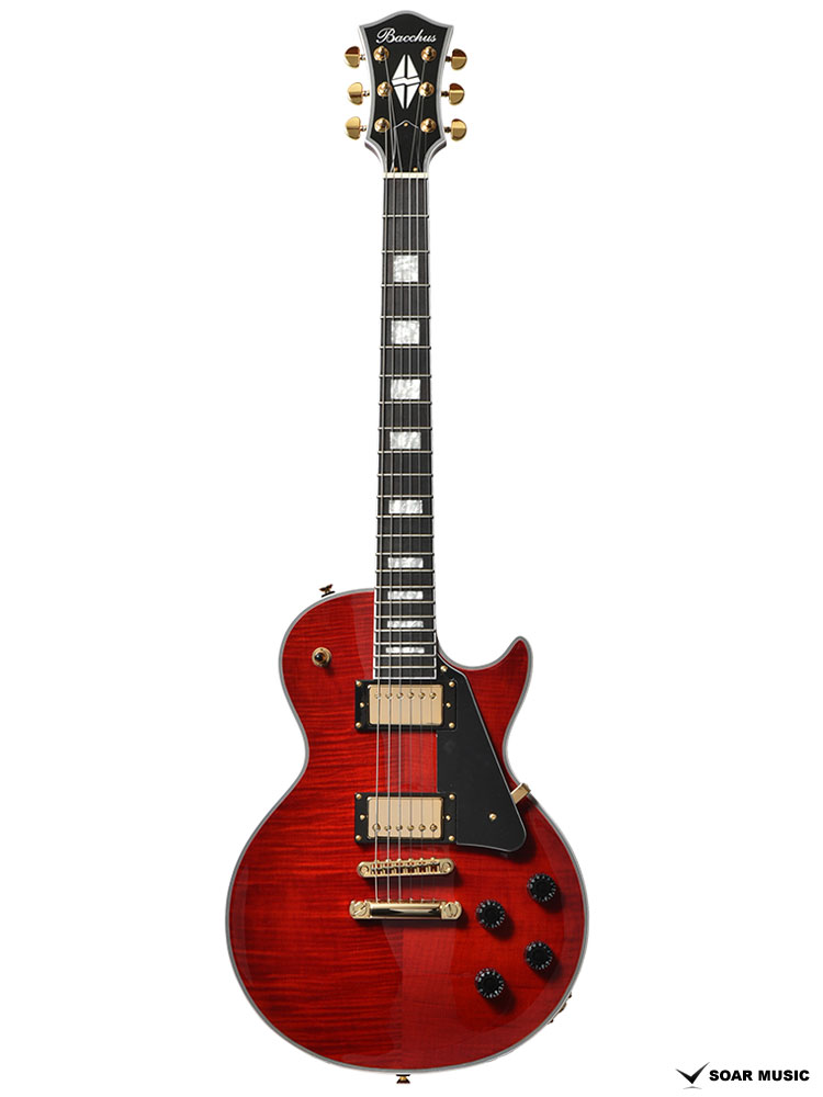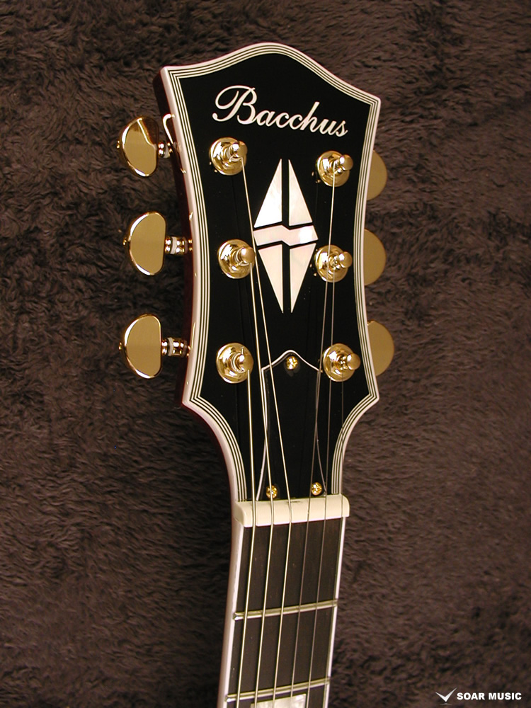 本モデルは個体毎に表情の異なるフレイムメイプルをボディトップに採用。Bacchus Handmade Series DUKEモデルのアーチ形状を踏襲したボディは、ポリッシュ塗装の反射が美しい引き締まったルックスとなりました。