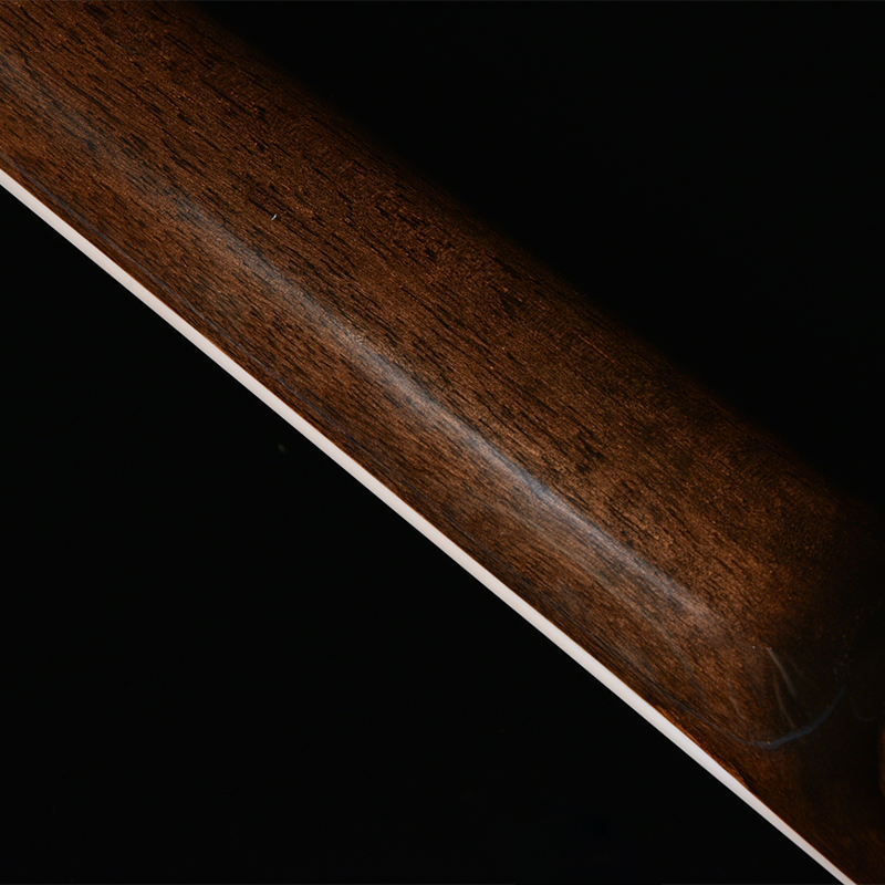 セットネックモデルにおいてそのプレイアビリティとサウンドに影響を与えるのが、ネックの仕込み角。アーチ形状と同じく国産のHandmade Series DUKEモデルの仕込み角を再現しつつ、材と設計に合わせた微調整を施しました。これによって適度なテンション感から生まれる張りのあるアタックと、豊かなボディ鳴りの最良のバランスが実現しました。