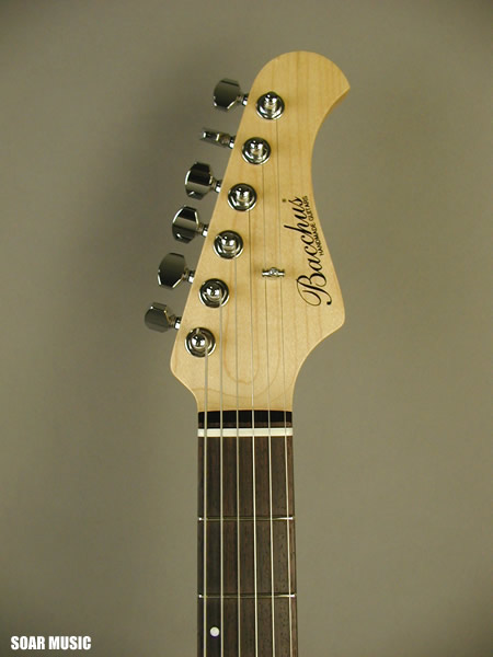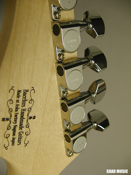 ペグには高い信頼と安定したGOTOH社製の「SG360-07」を搭載、ブリッジにはBacchuとGOTOH社の共同開発で実現した高い安定性と精度を誇るトレモロユニット「GE108TS」を搭載。ピッチを10.8mmに設定されたスチールプレスサドル、同じくスチール材を使用したインナーシャブロックを使用。