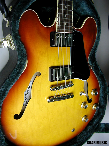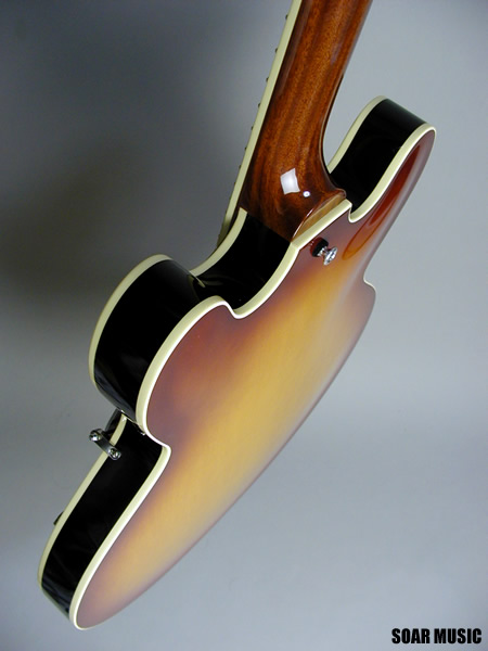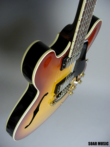 | 伝統的なラミネイテッドメイプルボディーの基本スペックと、トーンバランスを重視した独自構造のメイプルセンターブロックを採用。耐久性においてもボ ディーからネックまでバランス良く強化され、長年の弾き込みにも耐える高い信頼性を実現しています。更に新開発のアルニコハムバッキングピックアップが太 さとキレを併せ持つ、セミアコースティックならではのプレイアビリティーを最大限に引き出します。SeventySevenが求める16インチモデルの基 本品質がここに体現されています。 |