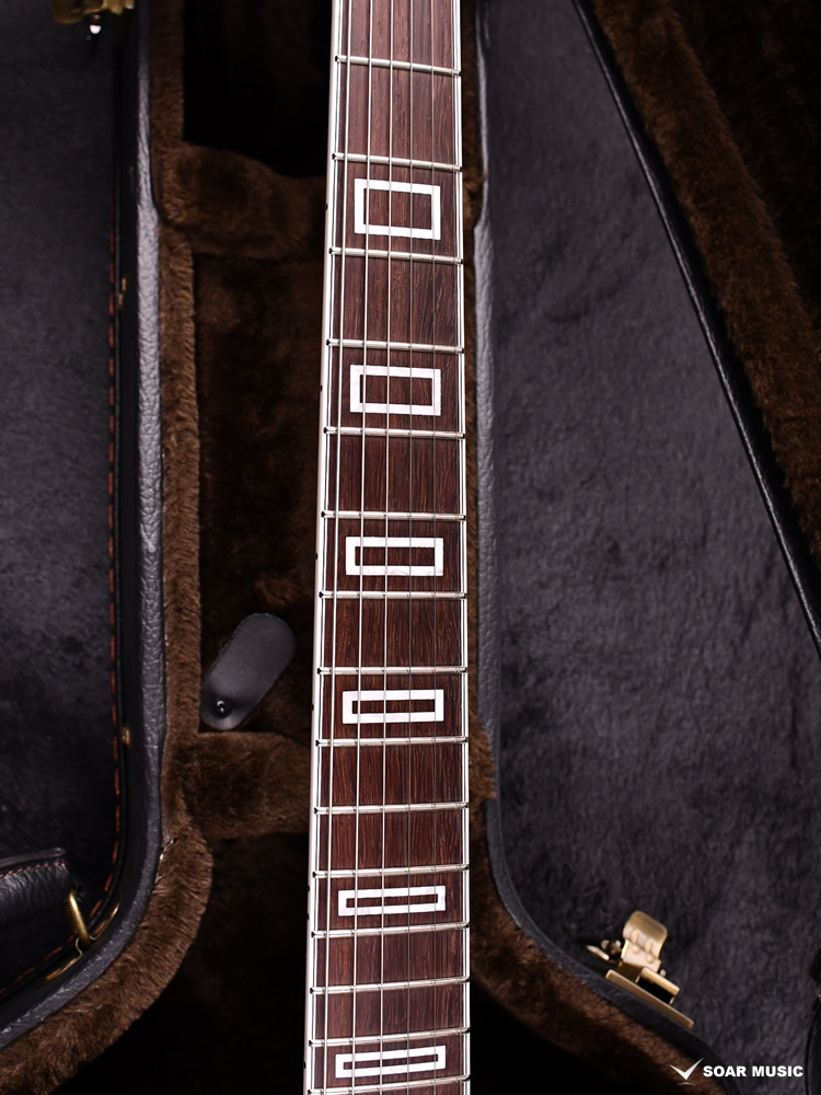 ポジションマークはすっきりした印象の特別デザインを採用。彫刻機によりエボニー指板を加工し、一つずつ手作業でポジションマークが埋め込まれます。指板やボディ外周のバインディングとも調和し、個性のあるデザインへと仕上がりました。
