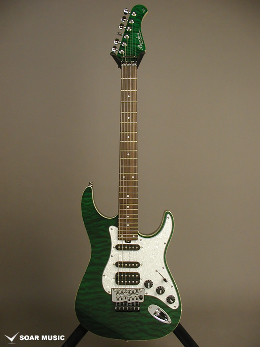 ボディトップにキルテッドメイプルを使用したGD-007モデルを基にブリッジにロック式のトレモロブリッジを搭載し、より自由度が高く、安定したアーミングを可能にしたモデルです。リアピックアップにハムバッキングを搭載したS-S-Hピックアップレイアウトでよりパワーのあるサウンドが出力できる他、コイルタップ/ブレンダーノブの搭載によりシングル/ハムの切り替えを可能にしており、シーンに合わせた幅広いサウンドメイクを可能にしています。