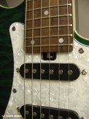 ボディトップに独特の美しい木目のキルテッドメイプル材を貼り合わせており、ボディ淵に施されたパール柄のバインディン、標準装備された人気のホワイトパールと相まって、更なる高級感と存在感を演出しています。
