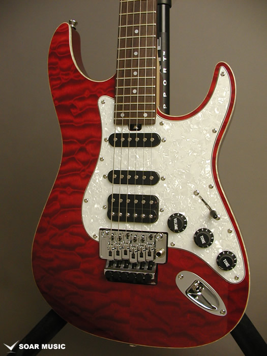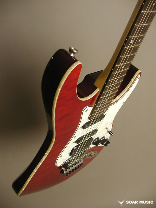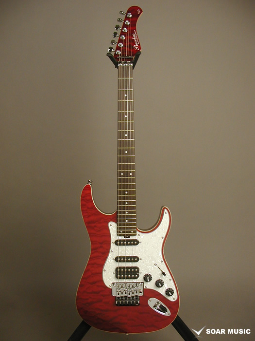 ボディトップにキルテッドメイプルを使用したGD-007モデルを基にブリッジにロック式のトレモロブリッジを搭載し、より自由度が高く、安定したアーミングを可能にしたモデルです。リアピックアップにハムバッキングを搭載したS-S-Hピックアップレイアウトでよりパワーのあるサウンドが出力できる他、コイルタップ/ブレンダーノブの搭載によりシングル/ハムの切り替えを可能にしており、シーンに合わせた幅広いサウンドメイクを可能にしています。