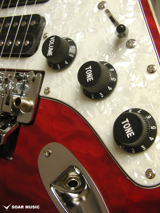 楽器の音量を調整するマスターボリューム、それぞれのピックアップポジションで高音域をカットするマスタートーン、プルアップによるコイルタップスイッチを兼ねたブレンダーノブが搭載されており、コイルタップによる瞬時のシングル/ハムの切り替えが可能な他、