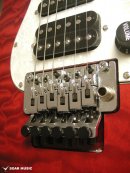 ブリッジにはロック式のトレモロブリッジが搭載されており、接点の少ない2点支持によるフローティングの状態とナット部分でしっかりと弦をロックする事でアーミングによるチューニングのずれを最小限に抑える他、より激しく深いトリッキーなアーム奏法が可能です。また、各弦で独立したサドルを設けることで、より細かなピッチ調整も可能にしています。ブリッジをはじめ、ペグやポットなどのパーツ類も限られた製作コスト内で精度と安定性を追求し、現地工房の日本人スタッフにより厳選されたパーツを採用しています。 |