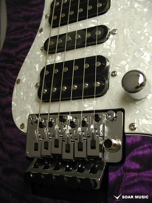 HSHピックアップとロック式トレモロが多彩なサウンドを可能に。 パワフルなハムバッカーとクリーンなシングルコイルの両方をカバーするHSHレイアウトピックアップを採用。ハムバッカーをシングルコイルとして動作させるコイルタップスイッチも装備し、あたかも3シングルコイルとしても使用することが出来ます。また、激しいアーミングにも抜群の安定性を持つロック式のトレモロブリッジによって自在な演奏が可能です。