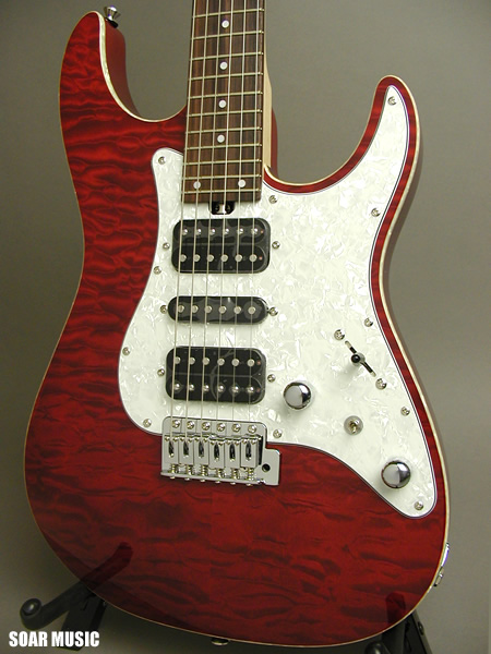ブリッジにシンクロナイズドトレモロを搭載することで、2点支持タイプのフロイドローズブリッジと比べ、より弦振動をボディに伝え鳴りを重視したモデルです。コイルタップスイッチによりフロント、リアピックアップのシングル/ハムの切り替えが可能で、幅広い音楽シーンでお使いいただけます。 |