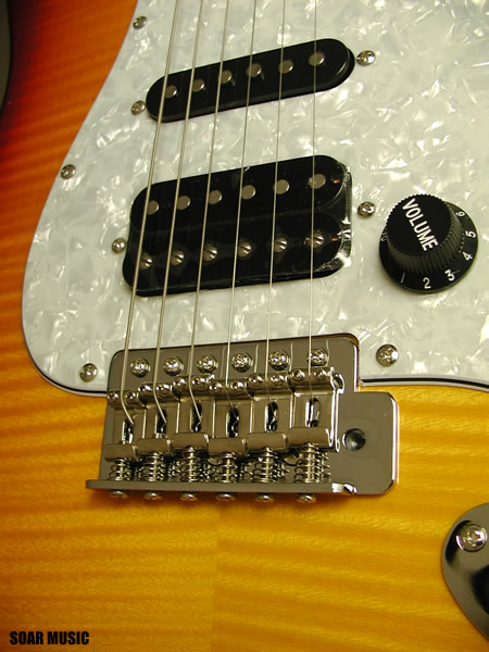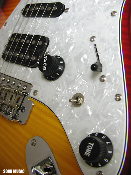 リアポジションにハムバッキングピックアップを搭載し、シャープなシングルコイルピックアップサウンドと対照的な太くフォームなサウンドまでカバーします。また、ハムバッキングピックアップは搭載されたスイッチによりタップ可能で、3シングルコイルピックアップの様にも使用可能です。クリーントーンとドライブサウンドの両方にマッチした柔軟なサウンドメイクが容易に行えます。 |