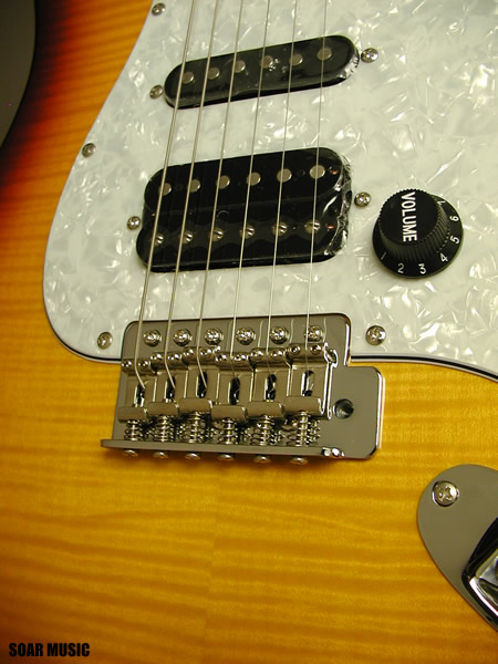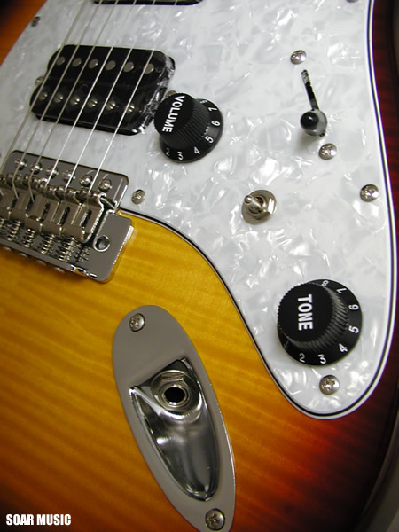 リアポジションにハムバッキングピックアップを搭載し、シャープなシングルコイルピックアップサウンドと対照的な太くフォームなサウンドまでカバーします。また、ハムバッキングピックアップは搭載されたスイッチによりタップ可能で、3シングルコイルピックアップの様にも使用可能です。クリーントーンとドライブサウンドの両方にマッチした柔軟なサウンドメイクが容易に行えます。 |