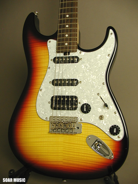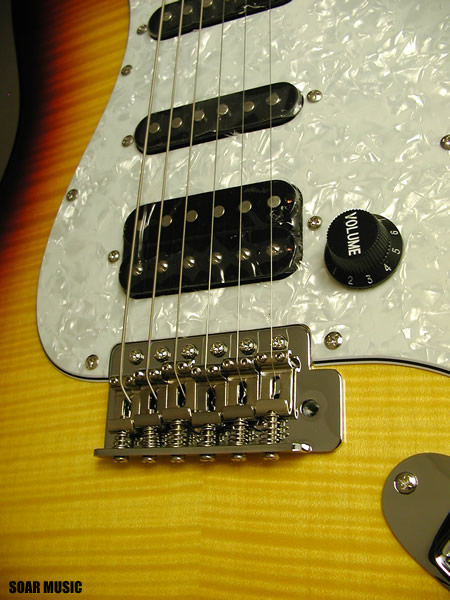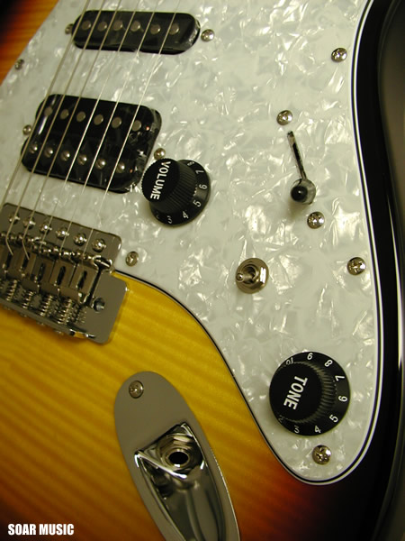 リアポジションにハムバッキングピックアップを搭載し、シャープなシングルコイルピックアップサウンドと対照的な太くフォームなサウンドまでカバーします。また、ハムバッキングピックアップは搭載されたスイッチによりタップ可能で、3シングルコイルピックアップの様にも使用可能です。クリーントーンとドライブサウンドの両方にマッチした柔軟なサウンドメイクが容易に行えます。 |