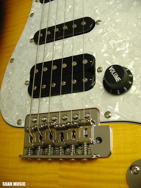 リアポジションにハムバッキングピックアップを搭載し、シャープなシングルコイルピックアップサウンドと対照的な太くフォームなサウンドまでカバーします。また、ハムバッキングピックアップは搭載されたスイッチによりタップ可能で、3シングルコイルピックアップの様にも使用可能です。クリーントーンとドライブサウンドの両方にマッチした柔軟なサウンドメイクが容易に行えます。 |