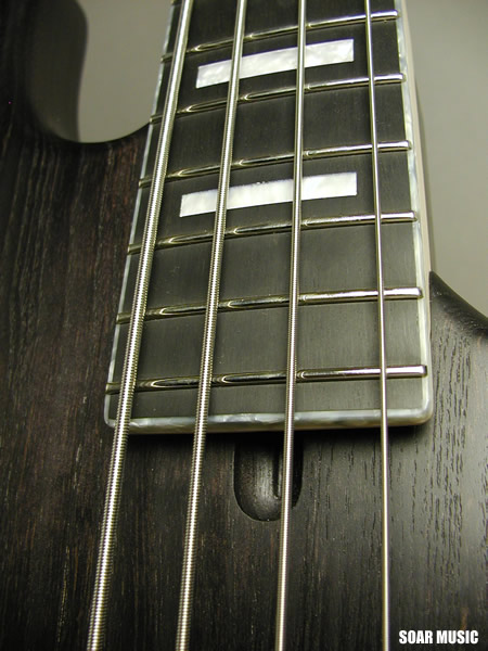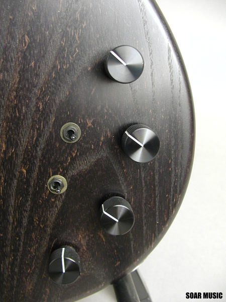 コントロール部は(ネック側から)VOLUME・TONE・TREBLE・BASSをノブに、プリアンプON/OFFとピックアップのシリーズ/パラレル切り替えをミニスイッチで搭載。 まずはVolとToneをフル、プリアンプON、パラレル、EQをフラットで試してみてください。シングルコイルにはない温かみのある独特のアタック感とサスティンを感じていただけるものと思います。 その後で、シリーズにしてEQをお好みでブーストしながらハイパワーなサウンドをお試しすることをオススメします!