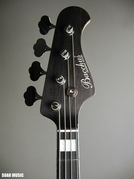 まず「バッカスと言えば」オイルフィニッシュ。いずれもアッシュの木目を生かしたシースルー系が多く、素材の音を大事にするバッカスのポリシーをルックスからもアピールします。 更にバッカスDBブリッジ、ネックのパーロイドバインディングなどなど、BACCHUSの定番とも言える仕様。程良い高級感を演出します。