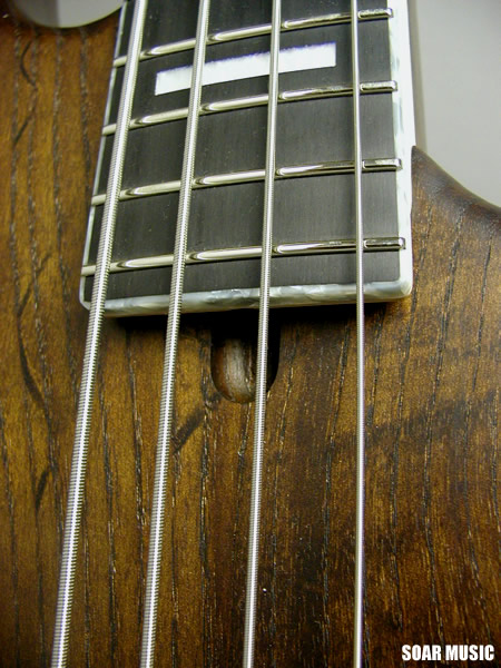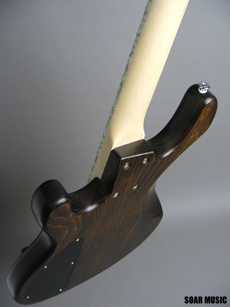 まず「バッカスと言えば」オイルフィニッシュ。いずれもアッシュの木目を生かしたシースルー系が多く、素材の音を大事にするバッカスのポリシーをルックスからもアピールします。 更にバッカスDBブリッジ、ネックのパーロイドバインディングなどなど、BACCHUSの定番とも言える仕様。程良い高級感を演出します。