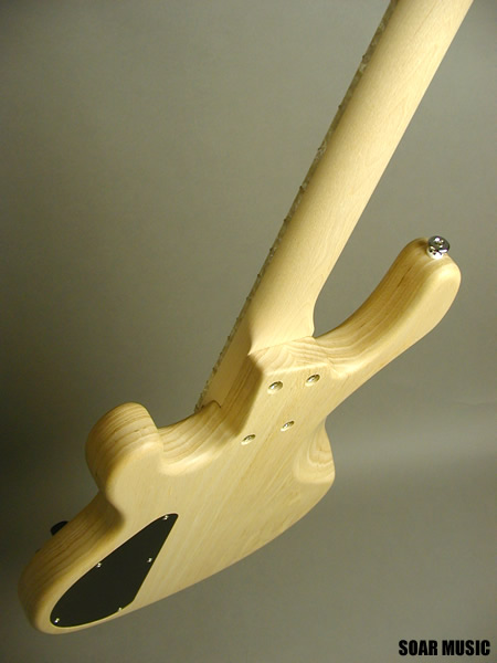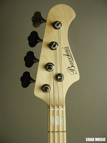 まず「バッカスと言えば」オイルフィニッシュ。いずれもアッシュの木目を生かしたシースルー系が多く、素材の音を大事にするバッカスのポリシーをルックスからもアピールします。 更にバッカスDBブリッジ、ネックのパーロイドバインディングなどなど、BACCHUSの定番とも言える仕様。程良い高級感を演出します。