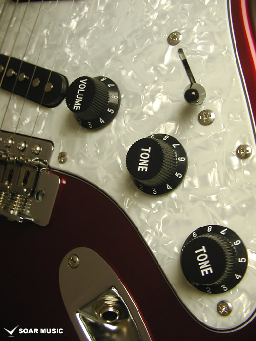 コントロール部分は1マスターボリューム、1マスタートーンの他、センタートーンノブの部分にTurbo Blender(※1)機能を搭載しており、シンプルなストラトタイプのルックスで、トラディショナルなシングルコイルのサウンドの他、ストラトタイプの枠を超えたより細かく幅広いサウンドメイクを可能にしており、新たな可能性を感じさせる仕様です。