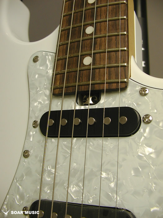 コントロール部分は1マスターボリューム、1マスタートーンの他、センタートーンノブの部分にTurbo Blender(※1)機能を搭載しており、シンプルなストラトタイプのルックスで、トラディショナルなシングルコイルのサウンドの他、ストラトタイプの枠を超えたより細かく幅広いサウンドメイクを可能にしており、新たな可能性を感じさせる仕様です。