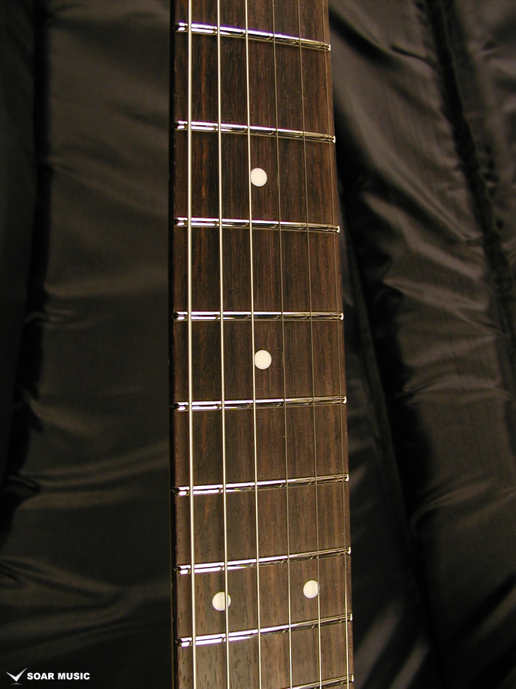 指板は280Rで形成されており、弦高低めのセットアップでのチョーキング(ベンディング)の際の音詰まりの改善だけではなく、バレーコード等の押さえ易さやネックを握り込んで演奏するウエスタングリップのスタイルでも手に馴染む高い演奏性を誇ります。