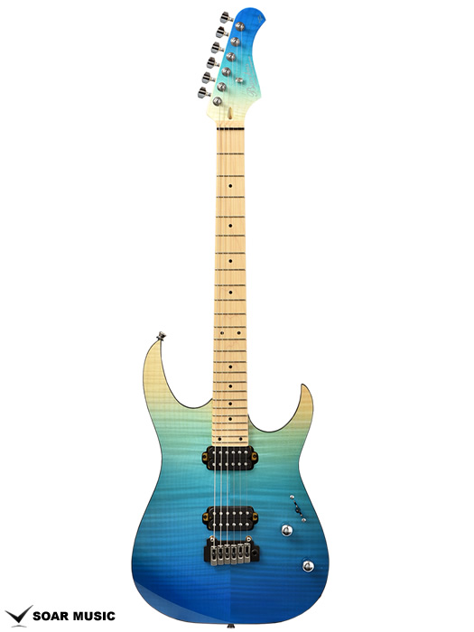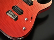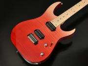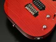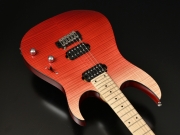 ボディトップには「フレイムメイプル」採用しており、バック材にはマホガニーを使用しました。ハムバッカーピックアップの太く分厚いサウンドが特徴です。また、24フレット仕様でウィルキンソンブリッジを採用しています。