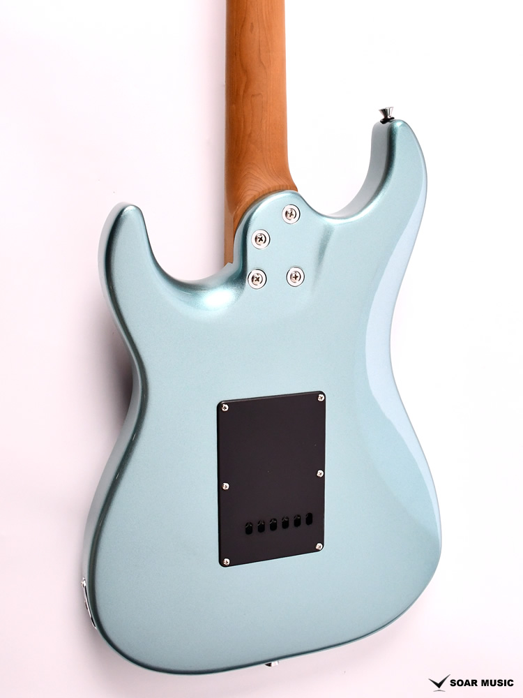 ローステッドメイプルとはメイプルを高温で加熱処理して材の中の水分や油分を揮発させることにより木材を経年変化した状態に人工的に近づけた材のことです。経年変化が進んだ材は歪みやねじれが生じにくくなります。ネックに使用されるとその効果は安定性だけでなくサウンドにも及び、豊かな生鳴りと経年変化したビンテージのようなこなれたトーンを生み出します。一般的に高級機種などで用いられる材ですが、手に取りやすい価格帯に落とし込むことに成功しました。