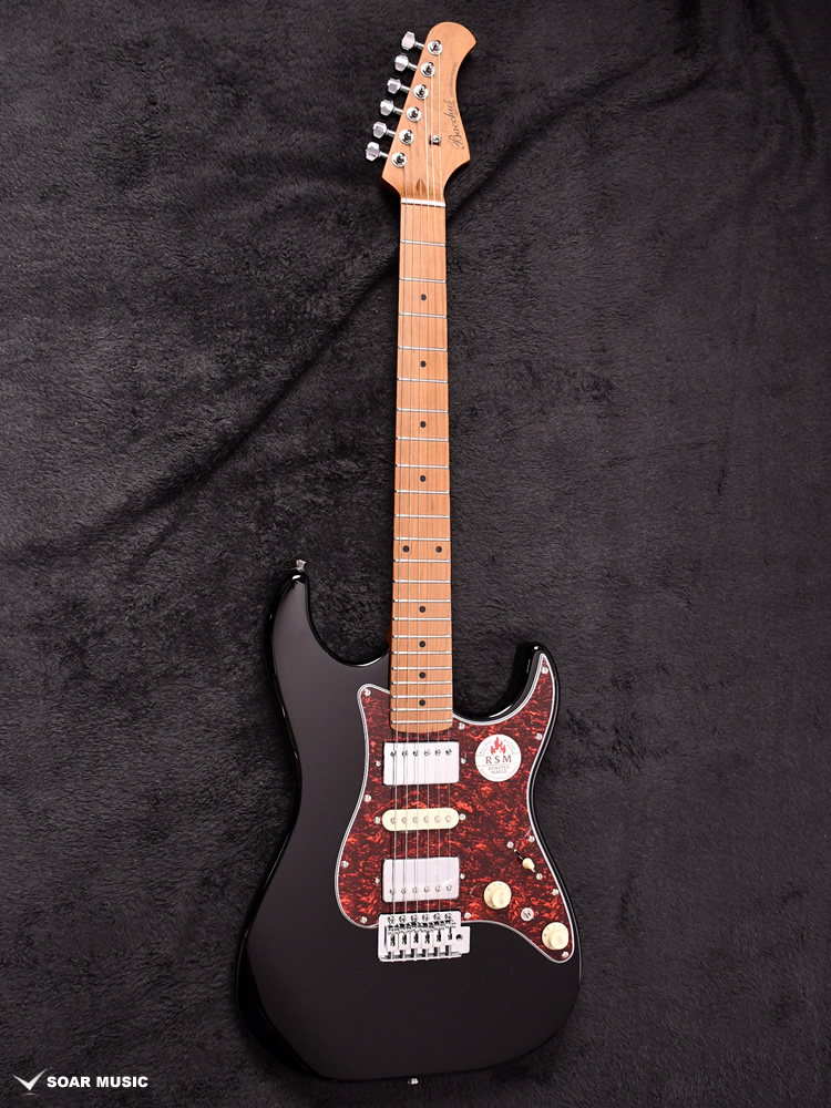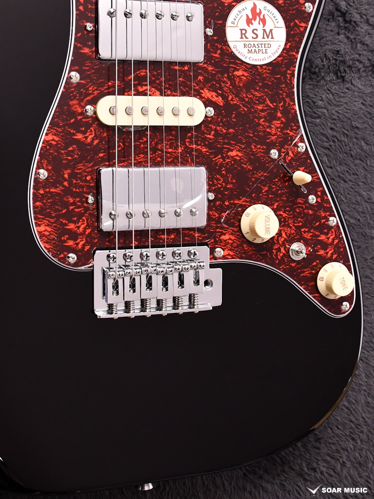 Bacchusのフラッグシップモデル「G-STUDIO」の系譜を引き継ぐボディシェイプを採用したGS-4DX RSM/M。H-S-Hのピックアップレイアウトに加え、耐摩耗性に優れたステンレスフレットを採用するなど、上位機種に迫るモダンスペックを備えます。