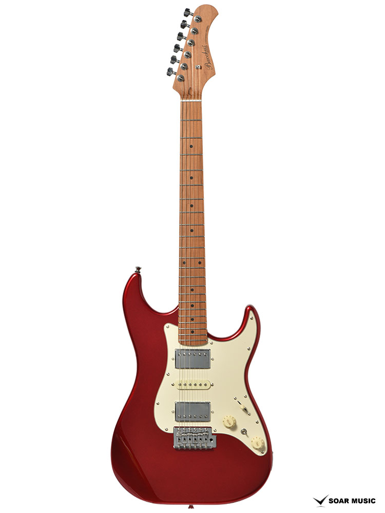 Bacchusのフラッグシップモデル「G-STUDIO」の系譜を引き継ぐボディシェイプを採用したGS-4DX RSM/M。H-S-Hのピックアップレイアウトに加え、耐摩耗性に優れたステンレスフレットを採用するなど、上位機種に迫るモダンスペックを備えます。