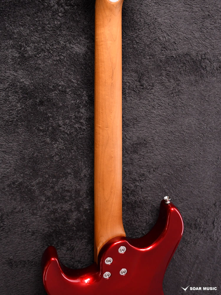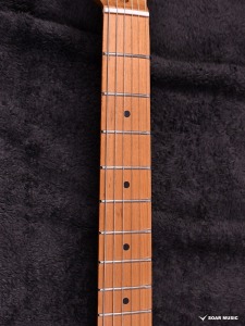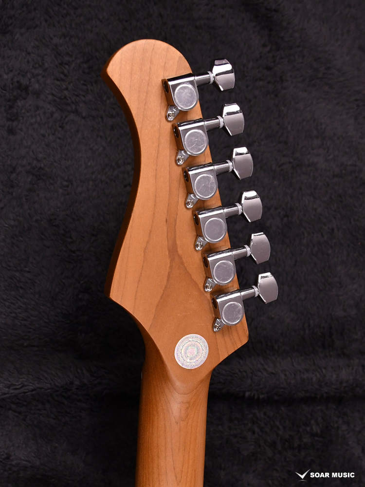 ローステッドメイプルとはメイプルを高温で加熱処理して材の中の水分や油分を揮発させることにより木材を経年変化した状態に人工的に近づけた材のことです。経年変化が進んだ材は歪みやねじれが生じにくくなります。ネックに使用されるとその効果は安定性だけでなくサウンドにも及び、豊かな生鳴りと経年変化したビンテージのようなこなれたトーンを生み出します。一般的に高級機種などで用いられる材ですが、手に取りやすい価格帯に落とし込むことに成功しました。
