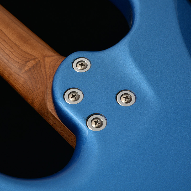 エントリークラスのモデルには珍しいヒールレスカットを採用することで、ハイフレットの演奏時もスムーズなフィンガリングを可能に。ブッシュボルト部分に施されたコンター加工がプレイアビリティを高めます。