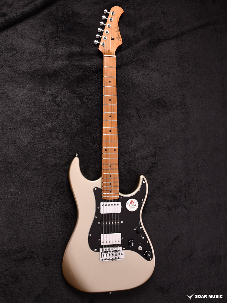 Bacchusのフラッグシップモデル「G-STUDIO」の系譜を引き継ぐボディシェイプを採用したGS-4DX RSM/M。H-S-Hのピックアップレイアウトに加え、耐摩耗性に優れたステンレスフレットを採用するなど、上位機種に迫るモダンスペックを備えます。