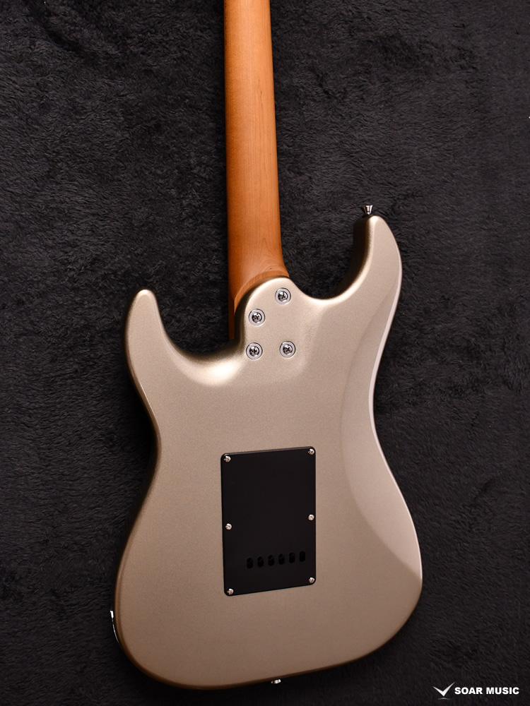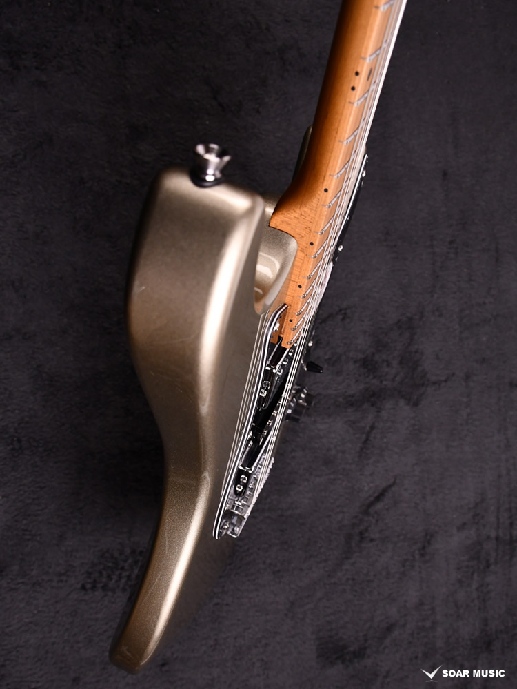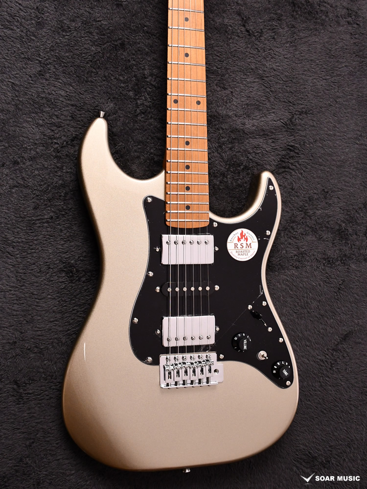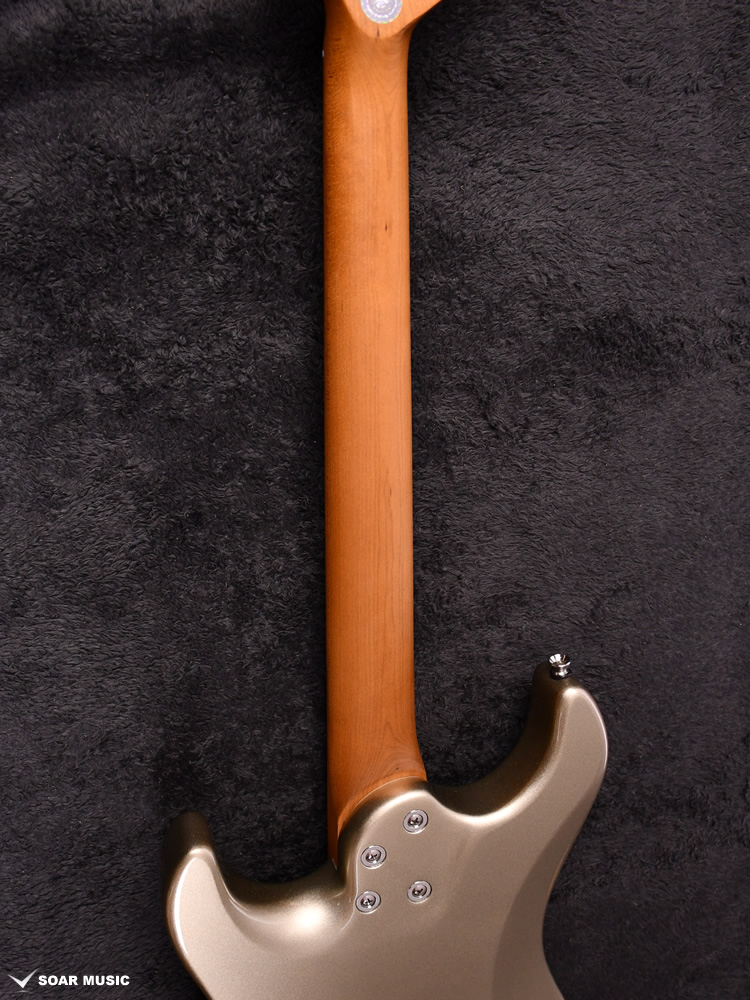 ローステッドメイプルとはメイプルを高温で加熱処理して材の中の水分や油分を揮発させることにより木材を経年変化した状態に人工的に近づけた材のことです。経年変化が進んだ材は歪みやねじれが生じにくくなります。ネックに使用されるとその効果は安定性だけでなくサウンドにも及び、豊かな生鳴りと経年変化したビンテージのようなこなれたトーンを生み出します。一般的に高級機種などで用いられる材ですが、手に取りやすい価格帯に落とし込むことに成功しました。