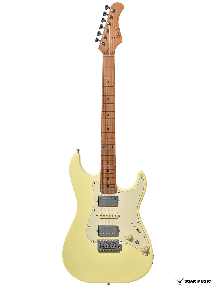 Bacchusのフラッグシップモデル「G-STUDIO」の系譜を引き継ぐボディシェイプを採用したGS-4DX RSM/M。H-S-Hのピックアップレイアウトに加え、耐摩耗性に優れたステンレスフレットを採用するなど、上位機種に迫るモダンスペックを備えます。