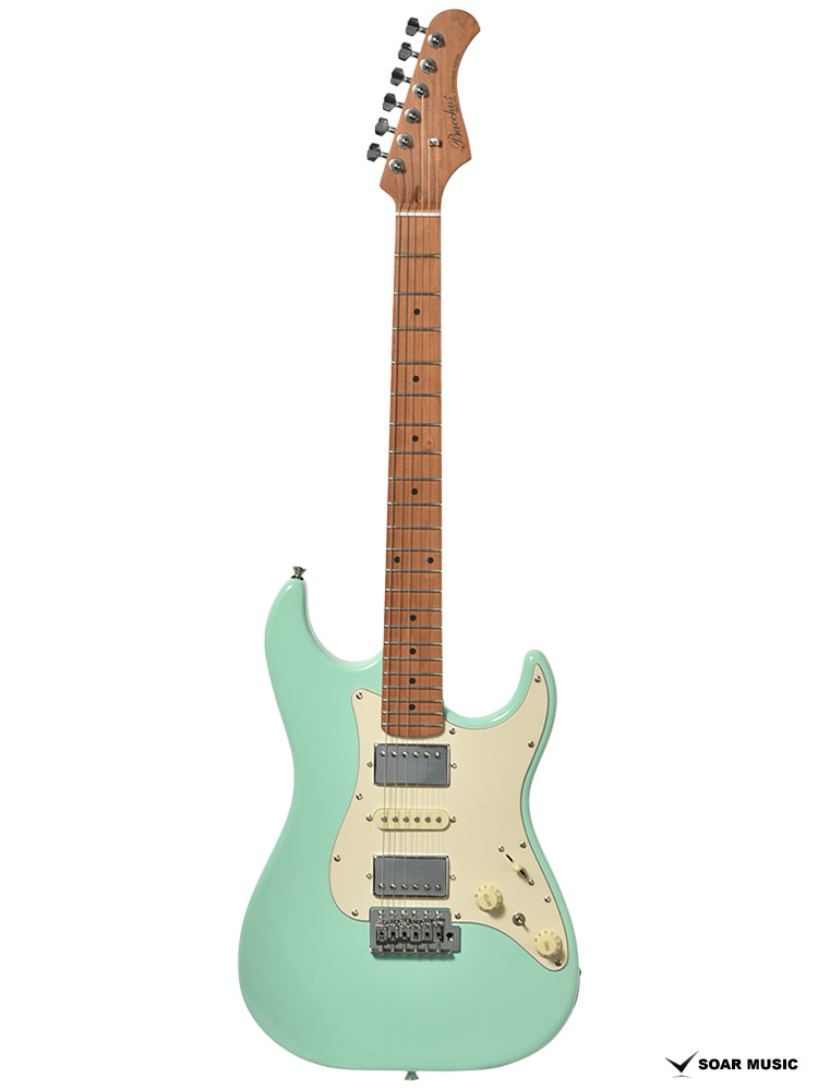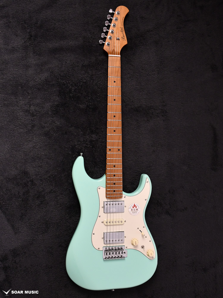 Bacchusのフラッグシップモデル「G-STUDIO」の系譜を引き継ぐボディシェイプを採用したGS-4DX RSM/M。H-S-Hのピックアップレイアウトに加え、耐摩耗性に優れたステンレスフレットを採用するなど、上位機種に迫るモダンスペックを備えます。