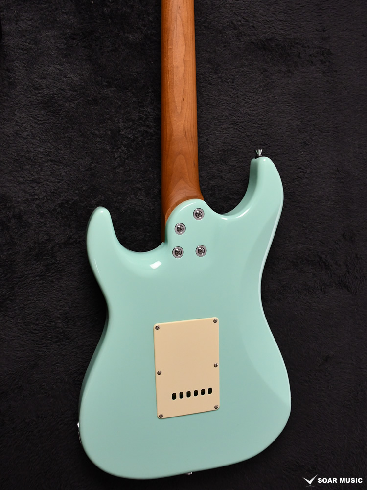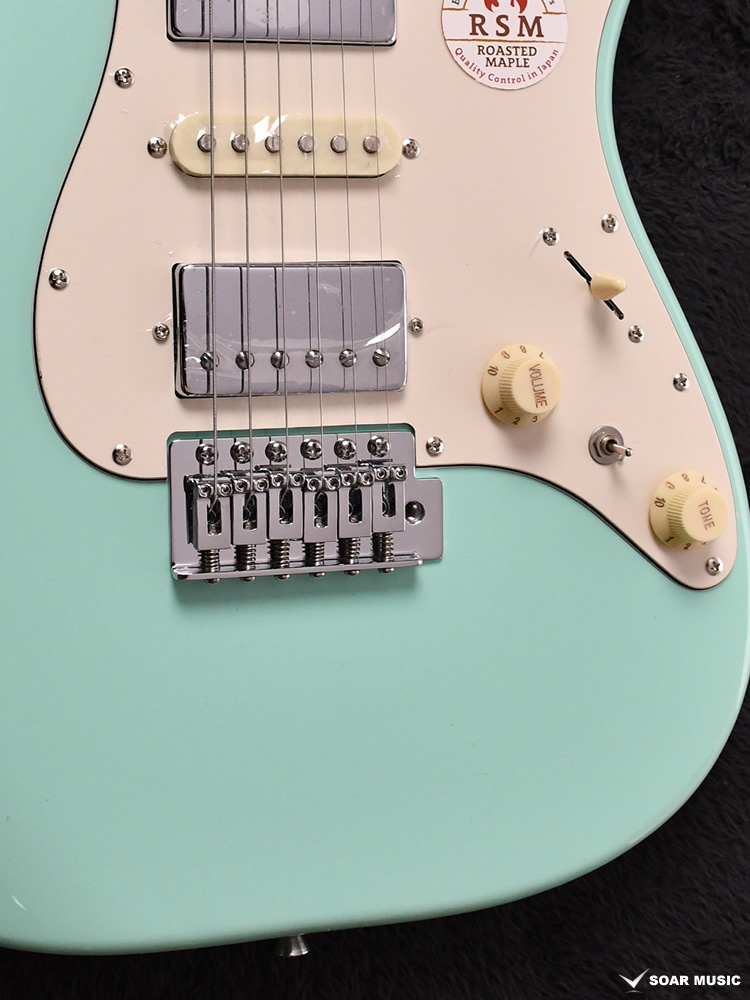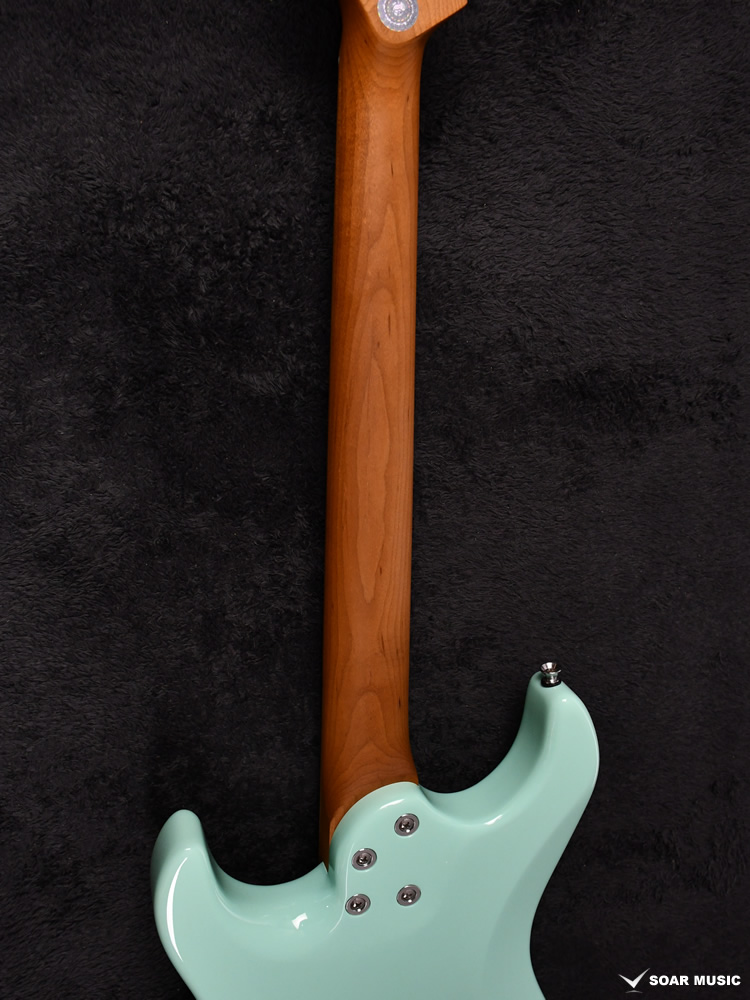 ローステッドメイプルとはメイプルを高温で加熱処理して材の中の水分や油分を揮発させることにより木材を経年変化した状態に人工的に近づけた材のことです。経年変化が進んだ材は歪みやねじれが生じにくくなります。ネックに使用されるとその効果は安定性だけでなくサウンドにも及び、豊かな生鳴りと経年変化したビンテージのようなこなれたトーンを生み出します。一般的に高級機種などで用いられる材ですが、手に取りやすい価格帯に落とし込むことに成功しました。