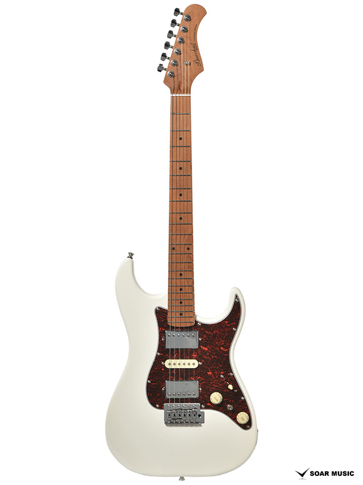 Bacchusのフラッグシップモデル「G-STUDIO」の系譜を引き継ぐボディシェイプを採用したGS-4DX RSM/M。H-S-Hのピックアップレイアウトに加え、耐摩耗性に優れたステンレスフレットを採用するなど、上位機種に迫るモダンスペックを備えます。