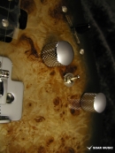 ボディトップには独特の杢目のバールポプラ材を使用しており、杢目を全面に活かせるよう、ピックガード無しの仕様となっております。