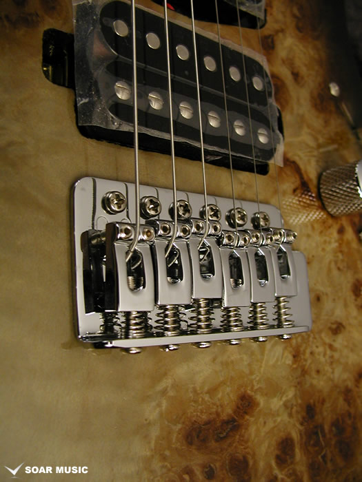 ブリッジにはシンクロナイズドトレモロが搭載されており、セッティングを施す事でアームによる表現豊かなビブラートやトリッキーなアーム奏法も可能です。