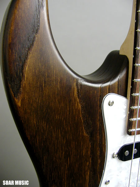 | 厳選に厳選を重ねたAAAクラスの希少材で組み上げた、圧巻の特別仕様モデル。 現行の G-STUDIO をさらにバージョンアップさせ極少数で製作された G-STUDIO ASH/BEM です。 ネック材には十分にシーズニングを施した希少材であるバーズアイメイプルを使用。 指板材にはハカランダ音質に限りなく近いと言われるマダガスカルローズウッドを使用しており、 豊かな倍音、サウンドの立ち上がりの良さは圧巻です。更に、アタックのレスポンスが良く音の輪郭がハッキリと出るアッシュ材をボディに使用しており、オイルフィニッシュ塗装を施すことでアッシュ特有の美しい木目を際立たせた上品な仕上がりです。 上質で深みのあるブラウンカラーのオイルフィニッシュとホワイトパールのピックガードのコントラストも非常に美しく 楽器としての品質は勿論、そのルックスもこの上なく瑞々しい1本となっています。 フロント/リアピックアップにはアタック時の低音域のバウンド感を活かしつつも、高音域の抜けの良さを追求したオリジナルピックアップ SCC-1 を搭載。 リア・ピックアップにはコード演奏時も分離の良いサウンドを演出し、 ドライでクリアーなトーンが特徴のオリジナルピックアップ MRH1 を搭載しています。 リアピックアップのシングル/ハムの切替を可能にするタップスイッチを採用しており、幅広い音楽に対応した汎用性の高いサウンドメイクが可能です。 堅牢かつ軽量でスタイリッシュなディバイザー社製ライトハードケースも付属。 |