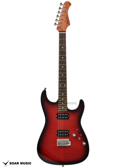 G-STUDIO FM-HH/Rはトップ材にフレイムメイプル、バック材にはマホガニーを使用しています。ピックアップはフロント・リア共にハムバッカーを採用しました。マホガニーとの相性もよくミッドレンジが豊かなパワーあるサウンドをお楽しみいただけます。