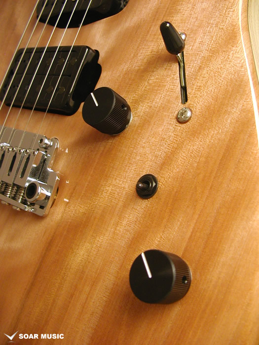 1ボリューム、1トーン、5ウェイ・ピックアッセレクターのシンプルなコントロールの他、リアピックアップのシングル/ハムを切り替えるコイルタップのミニトグルスイッチが搭載されています。シーンに合わせて、容易にサウンドコントロールが可能です。
