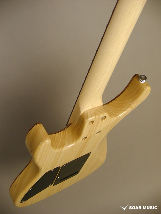 ボディトップには上品な杢の入った桜(チェリー)材を使用し、ボディバックにはアッシュ材をマッチング。